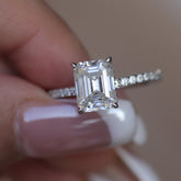 CeylonBrilliant Emerald Cut Lab Emerald Sterling Silver 0.9ct 7×5mm Halo Moissanite 925 Silver Ring | CeylonBrilliant CeylonBrilliant crafts this exquisite jewelry piece with premium 7×5mm 0.9ct emerald-cut lab grown emerald, halo-set moissanite and high-quality 925 silver. The main lab grown emerald boasts vivid green...- $189.00