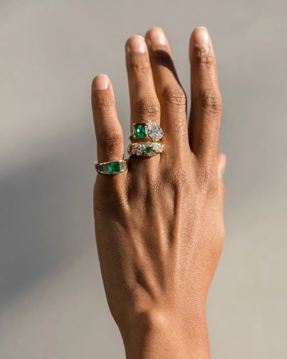 For some, more is more. Ear Climbers, Tennis Necklaces, Mixed Shape Bracelets, and Arc Necklace are perfect for those with dramatic or fashion-forward style. Unique ring settings, like a Five Stone or Curator Band, are also sure to please those with more avant-garde style.